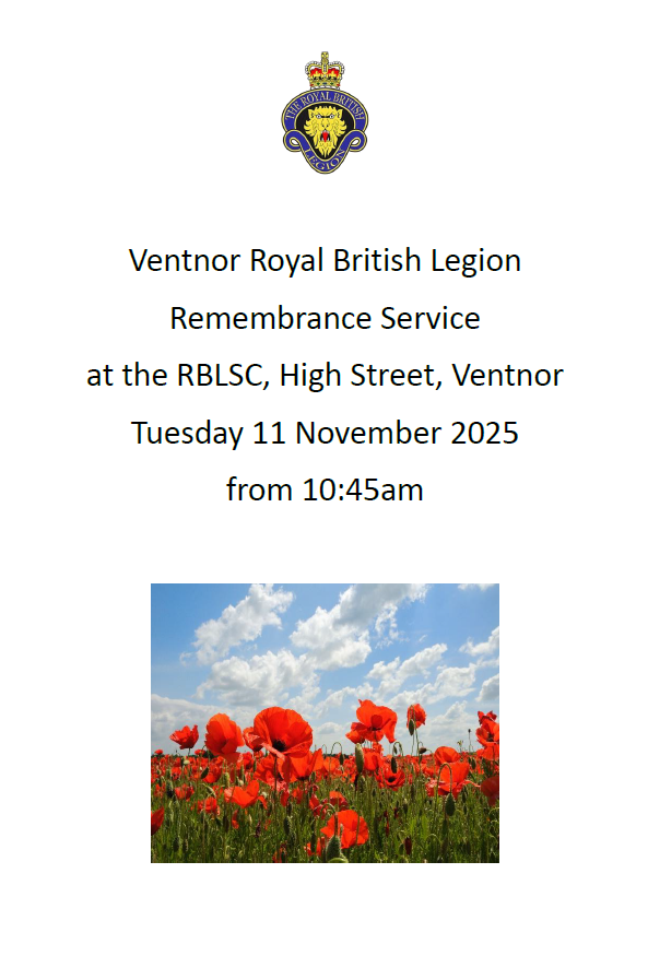 A Remembrance Service will be held on Tuesday 11th November 2025 at the RBLSC, High Street, Ventnor, from 10.45am.
